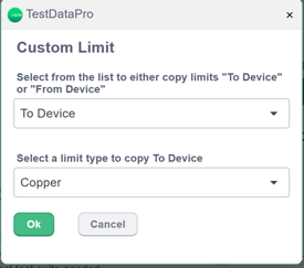 - From the popup dialog box for Custom Limit, there are two dropdown options. “To Device” is correct. In the example, we are importing a copper limit, so we will leave this at the default “Copper”. Click the green Ok button.