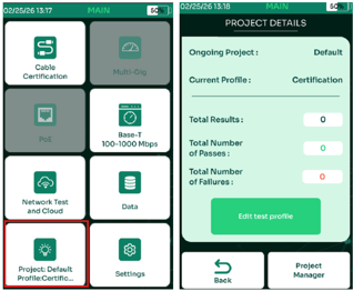 - To change the limit on the TestPro to the newly imported custom limit, click the Project button in the lower left corner of the home screen, which takes you to the Project Details screen. If you are not already in the project you need, click on Project Manager button in lower right and select the project you wish to update if already created (or create the project if it is a new one), then click the Back button to return to Project Details screen.