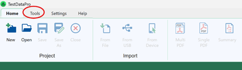 - In TestDataPro application, click on the Tools tab at the top.